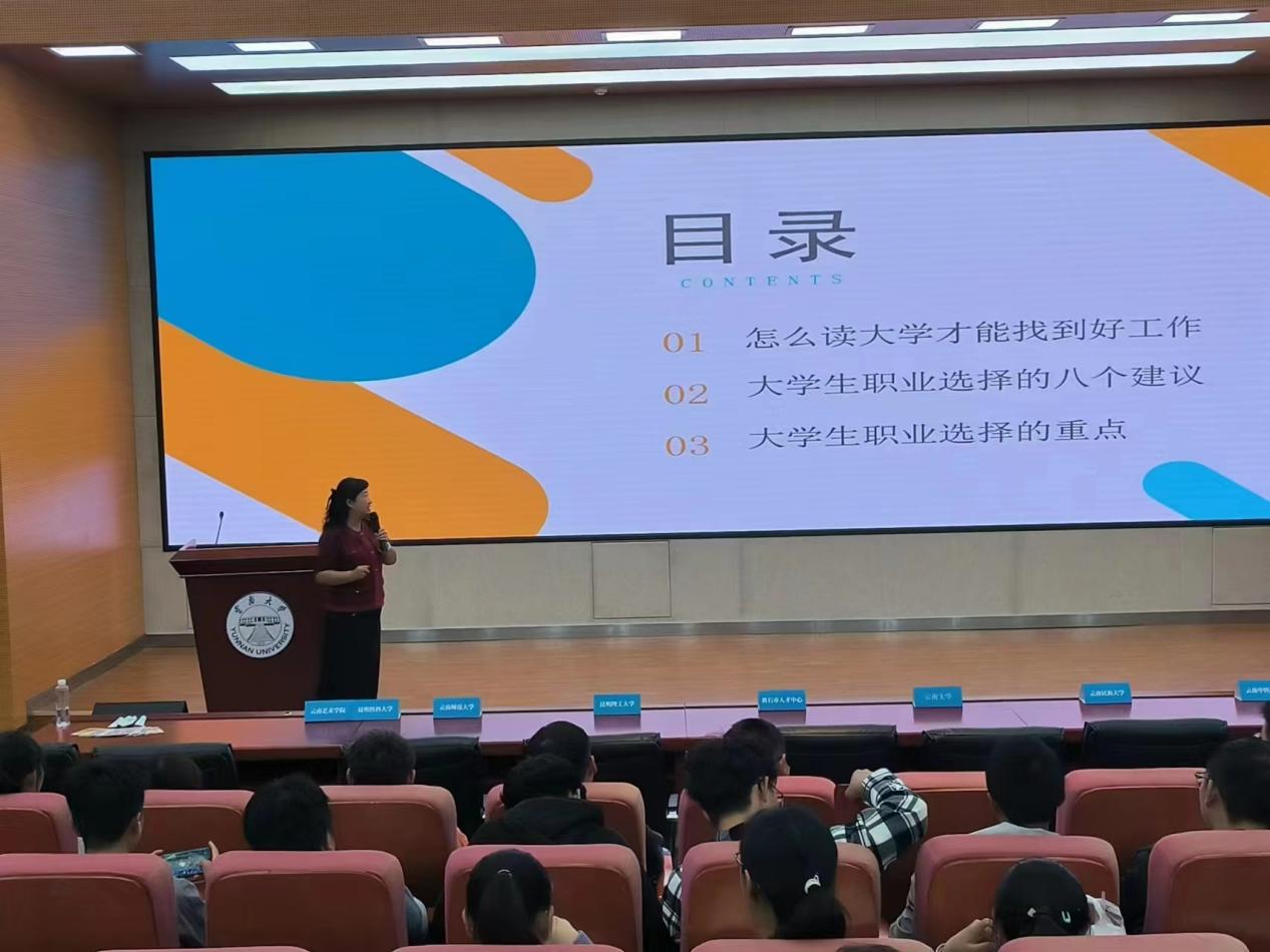 为更好地帮助员工正确认识自我,明确自我发展方向,树立初步的自我人生规划意识,提高规划未来的能力。2023年10月20日下午,公司于呈贡校区图书馆西附楼报告厅开展了老员工职业生涯规划教育讲座。本次讲座由辅导员王蔓琦主持,邀请了校外职业指导师杨煦怡主讲,全体2023级本科生参与。