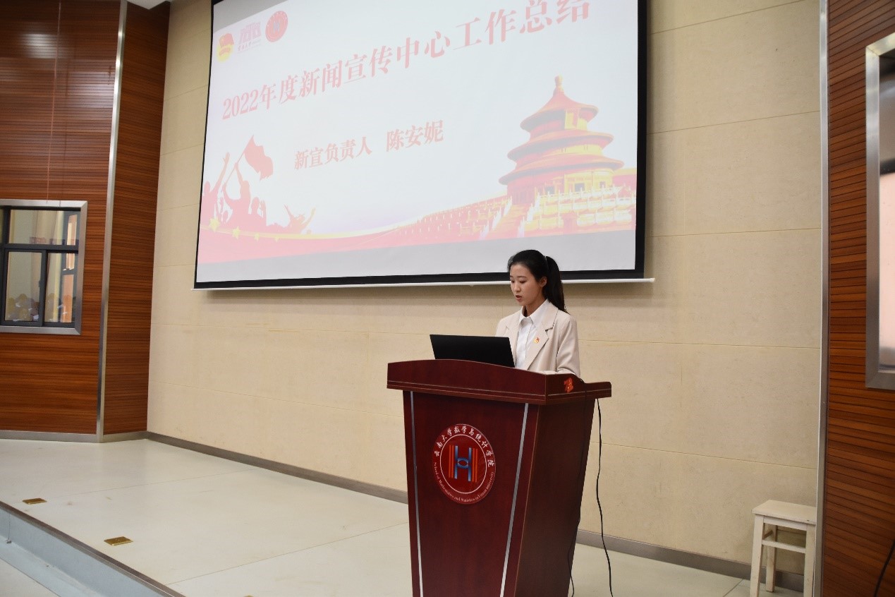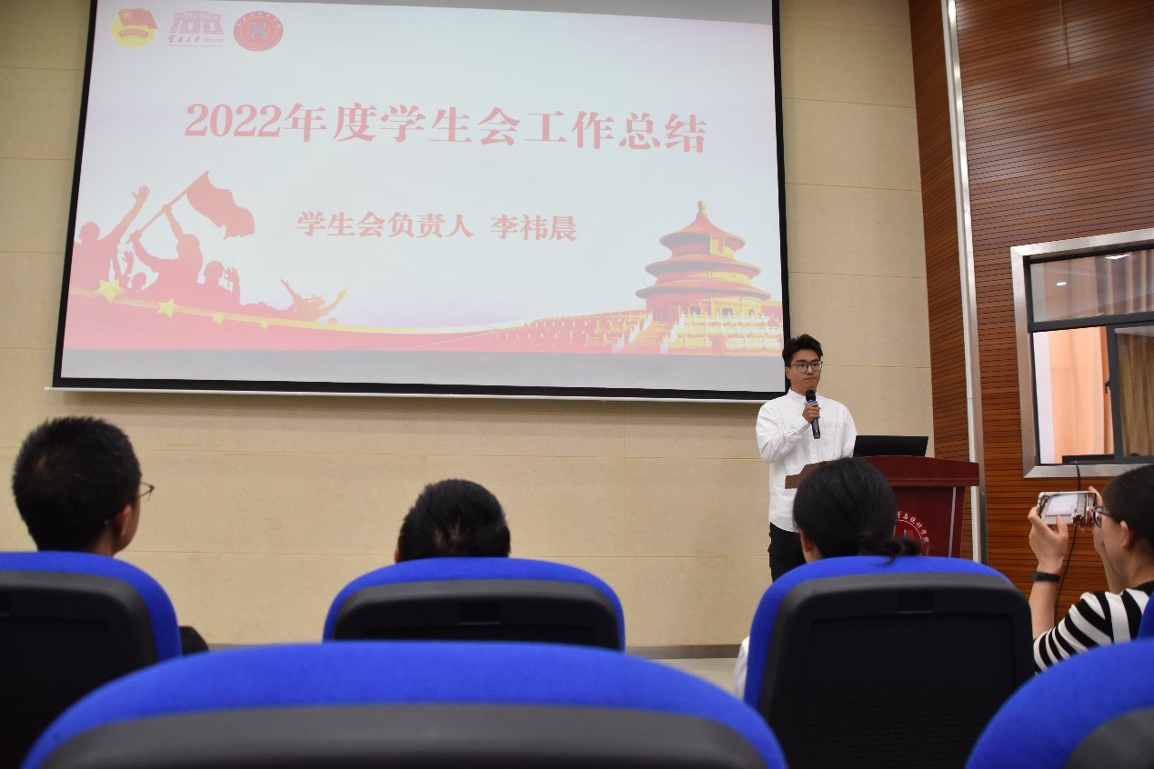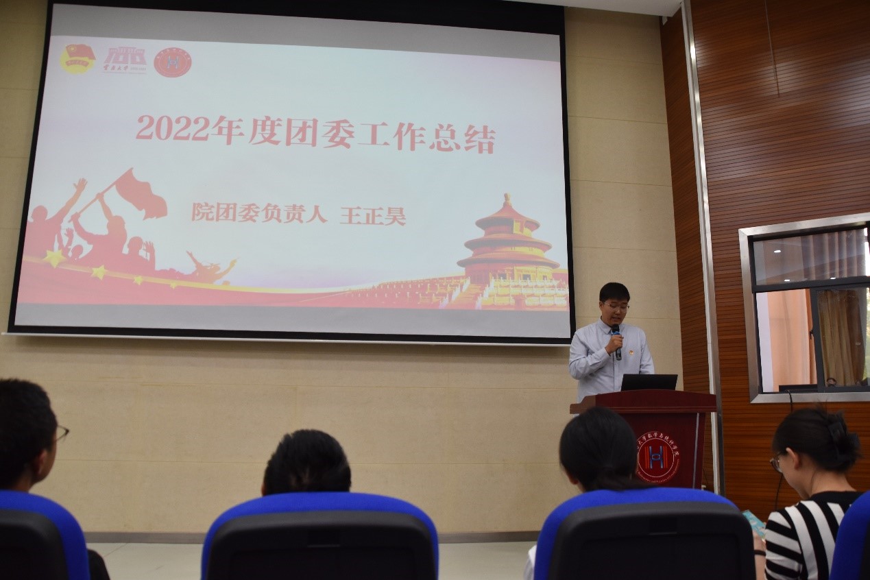 第二项议程:总结学院2022年度共青团工作。学院团委负责人王蔓琦老师立足工作岗位、围绕自身职责、聚焦主责主业、结合学科特色,客观、全面、具体地介绍了学院团委一年来在思想引领、素质拓展、权益服务、组织提升等方面的工作情况和所获成效。