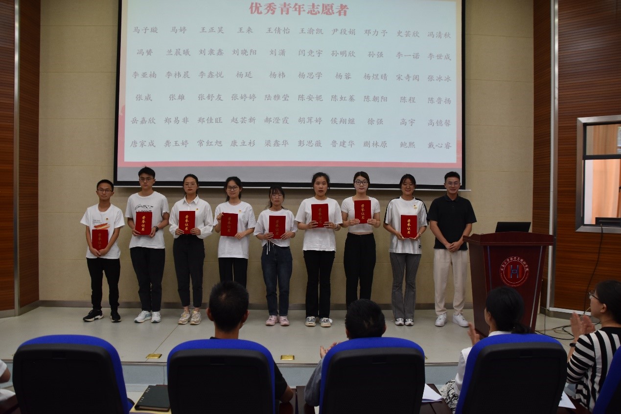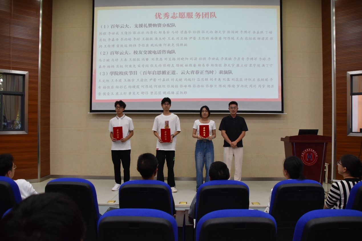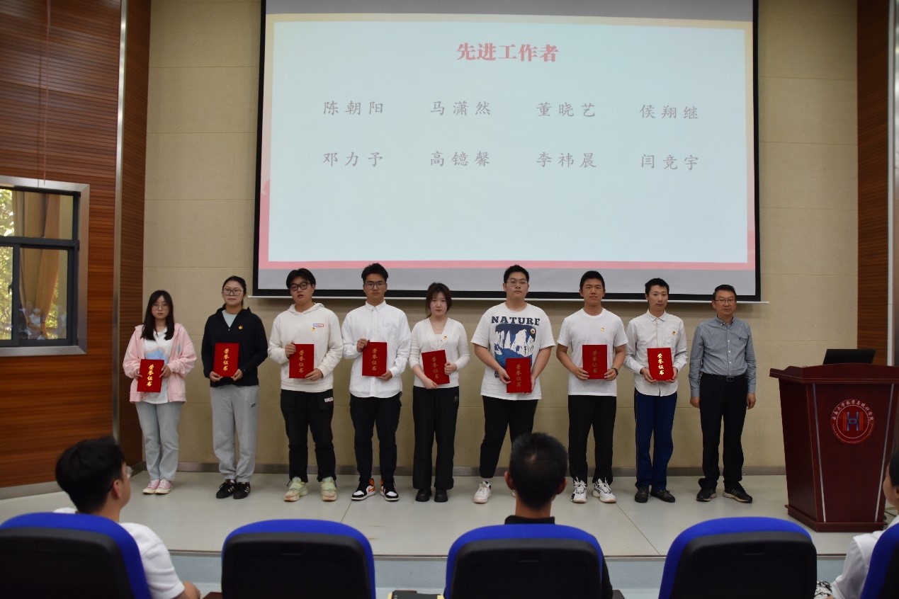 第五项议程:颁奖环节。为表彰先进,宣传先进,激励全院青年、团员、团干部和组织奋发有为、再创佳绩,学院团委决定授予2022级应用统计研究生第二团支部等4 个团支部“红旗团支部”称号,授予陈朝阳等8位同学“先进工作者”称号,授予王正昊等74位同学“优秀共青团干部”称号,授予李京京等114位同学“优秀共青团员”称号,授予吴婉婷等22位同学“学业进步奖”称号,授予苏宇杰等75位同学“优秀毕业生”称号,授予马子璇等60位同学“优秀青年志愿者”称号,授予3个志愿团队“优秀志愿服务团队”称号。各获奖代表依次上台领奖。