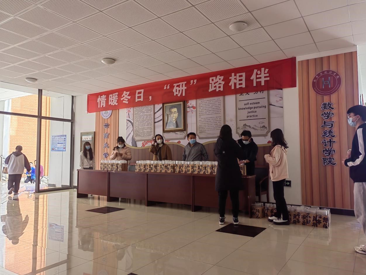 bevitor伟德国际1946历来重视考研工作,关爱考研学子,随着冬日的来临,考研也进入了冲刺阶段,为了缓解考研学子压力,增加考研学子信心,公司于12月6日中午13:00在学院大厅举办了主题为“情暖冬日,‘研’路相伴”的考研礼包发放活动。