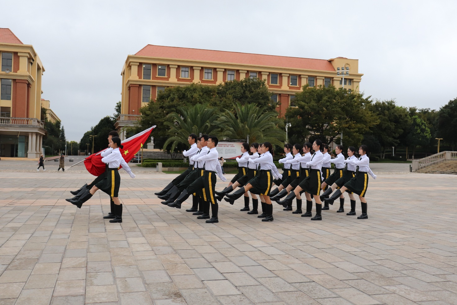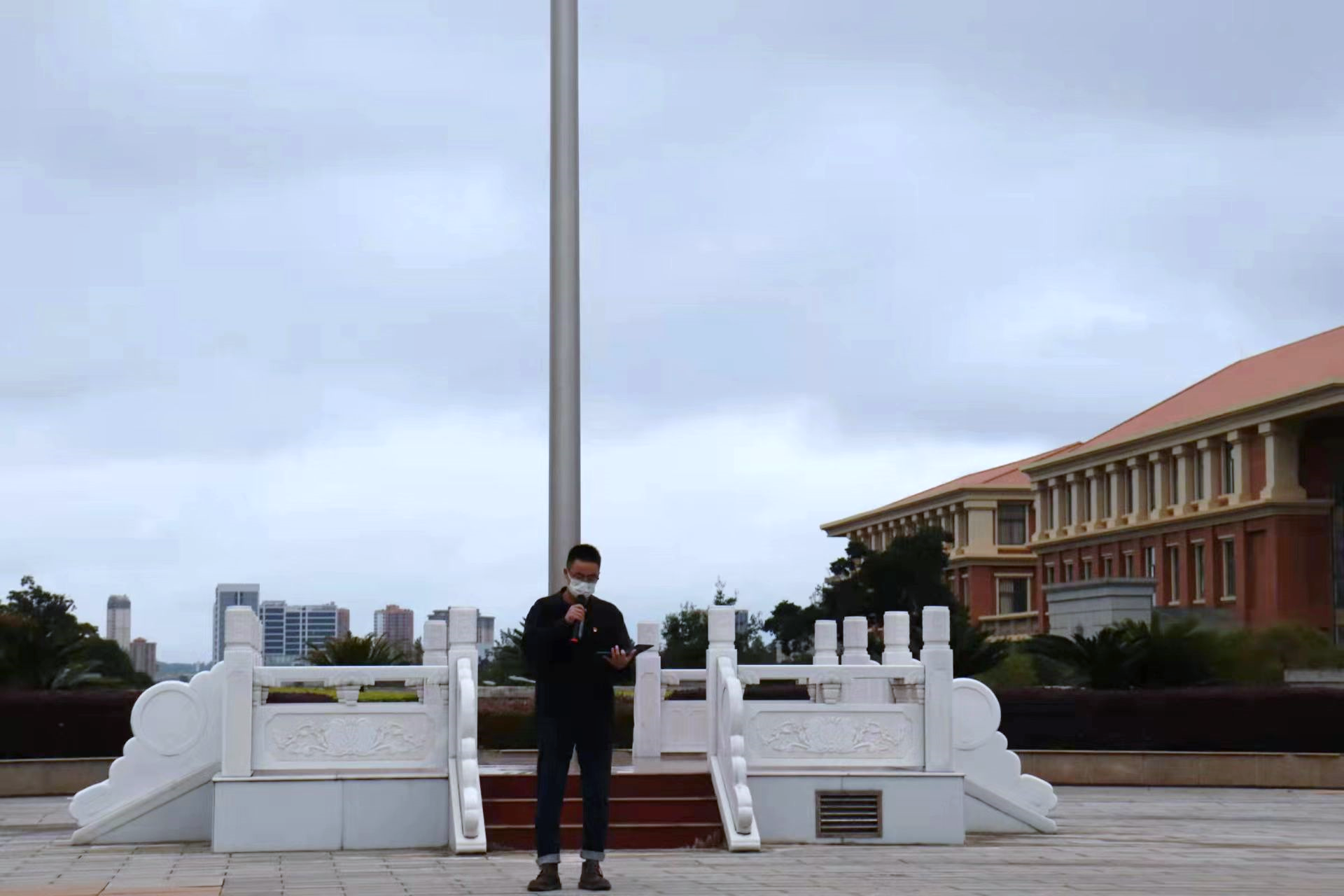 早上七点公司大一、大二、大三年级本科生准时到达文典广场,早上七点半升旗仪式正式开始。伴随着国旗护卫队铿锵有力的步伐,现场庄严而肃静。所有人的目光聚集在那面五星红旗上,眼里满是希望的光辉与对先辈的敬佩。