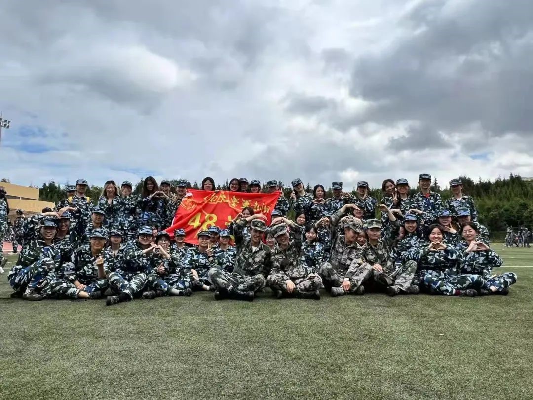 晨光熹微,连旗飘扬,出早操时恰能望见红日初升。一身身迷彩服整齐穿戴,一双双眼睛目光炯炯。阳光扫过迷彩帽下年轻的脸庞,为新一天军训拉开帷幕。同学们听到指令迅速集合,毫不拖泥带水。艳阳逐渐高悬,天空澄碧如洗,地面炙热,一道道迷彩身影即使汗如雨下,也挺拔如松。稍息立正跨立,正步踏步跑步,方阵随教官的指令做出整齐而利落的动作,气势如虹。而晚上的课外活动热闹非凡,同学们能歌善舞,多才多艺,为大家带来精彩的表演。席地而坐的观众也举起手机,打开灯光,为表演者呐喊支持。黑夜中一排排灯光闪烁,伴着音乐的节奏摇动,同学的笑容闪亮,眼里有光。教官有时会分享他们的从军经历、部队生活,充实而有趣,常引得同学们敬佩向往。