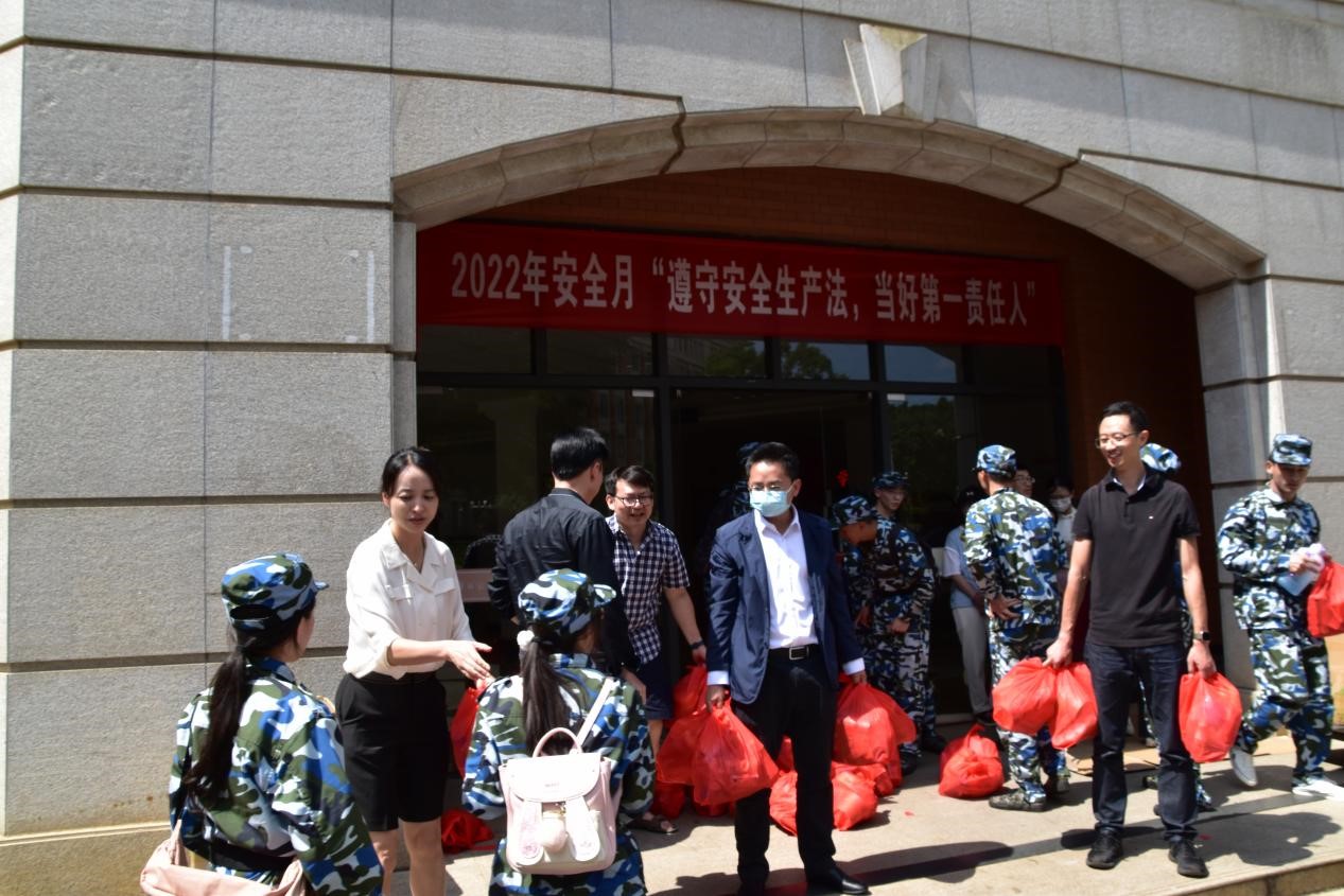 2022年7月15日上午10点,公司于格物楼前开展2020级、2021级军训慰问工作。公司党委书记徐瑾、党委副书记杜芳芳、2020级辅导员鲁学伟、2021级辅导员罗敬,以及班主任娄本功、刘进静等老师出席了本次慰问活动。