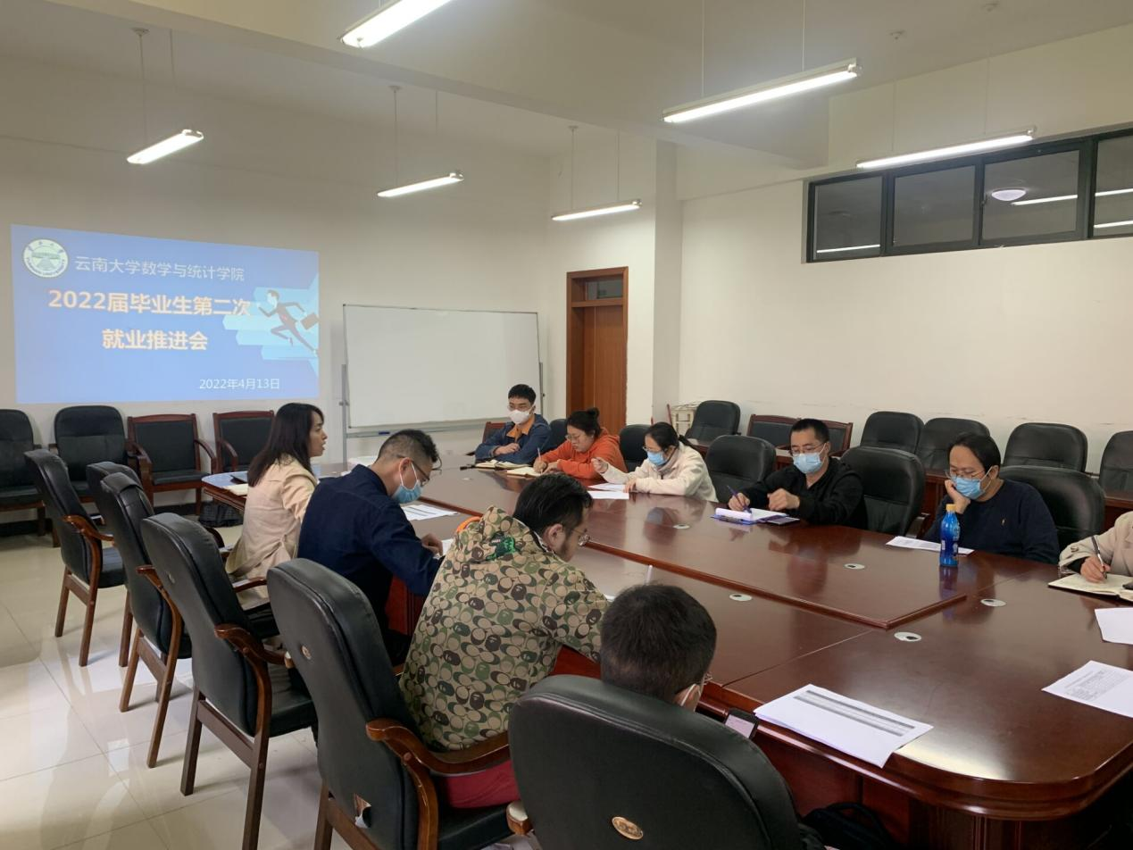 4月13日中午13:00,数学与统计学院在格物楼3306举行2022届毕业生第二次就业推进会,此次会议参会人员有公司党委书记徐瑾老师、党委副书记杜芳芳老师、2021届班主任代表索剑锋老师、吕君老师、2022届本科生、研究生班主任和全体辅导员。