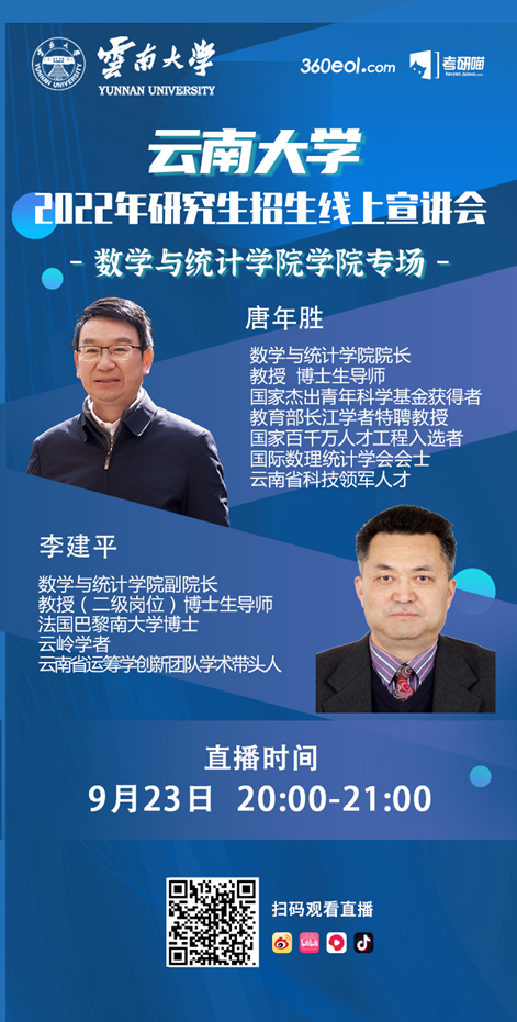 经过几代人的努力,bevitor伟德国际1946现已形成以近代分析、代数、微分方程、组合最优化与算法理论和数理统计为代表的5个具有明显优势和特色的、稳定的研究方向;形成了一支以中青年教师为核心,职称、年龄、学历、专业学缘结构合理的、优势明显的团队队伍。现有专职教职工76人(专任教师67人),其中教授18人,副教授28人,具有博士学位的教师51人,兼职院士2人、兼职教授8人。教育部“长江学者奖励计划”特聘教授1人、讲座教授2人,“国家杰出青年科学基金”获得者1人,国家特聘教授1人,人社部“百千万人才工程”入选者1人,国家级有突出贡献专家1人,国家自然科学基金委数学天元基金学术领导小组成员1人,教育部高等学校统计学专业教学指导委员会委员1人,教育部“新世纪优秀人才支持计划”入选者1人,国际统计学会推选会员1人,国际泛华统计协会“Board of Directors”1人,霍英东青年教师奖获得者2人,云南省科技领军人才1人,“省突”或“省贴”3人,云南省“高端引进人才”2人,云南省“百人计划”入选者3人,云南省“万人计划”青年拔尖人才14人,云南省委联系专家3人,云南省中青年学术和技术带头人4人,云南省中青年学术和技术带头人后备人才2人,云南省教学名师3人。20余名教师赴美、英、加等国家,以及中国的香港、台湾等地区的世界知名高校(耶鲁大学、牛津大学、哥伦比亚大学、密歇根大学、香港大学、台湾大学等)访学进修。10多人在国家级、省级学会担任理事长、会长、副理事长、常务理事等职务。