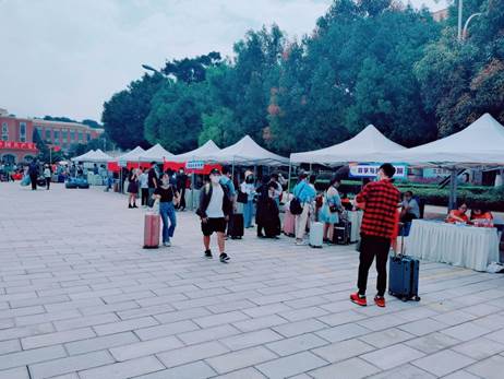 为确保本次迎新工作的顺利进行,公司提前做好了充分的准备,迎新工作有条不紊的进行。同学们经过测量体温、扫描“云南健康码”、扫描“今日校园”app、行李消杀等流程后进入校园办理报到注册手续。出于学校的疫情防控需要,送新生的社会车辆和亲友无法进校,公司组织志愿者为研究生新生提供必要的帮助。烈日炎炎下,从帮忙搬行李到校内道路引导,热情周到,恪尽职守。在学院迎新工作人员和志愿者的导引下,新生体验到了更加便捷的报到流程,感受到了bevitor伟德国际1946的温暖和团结。