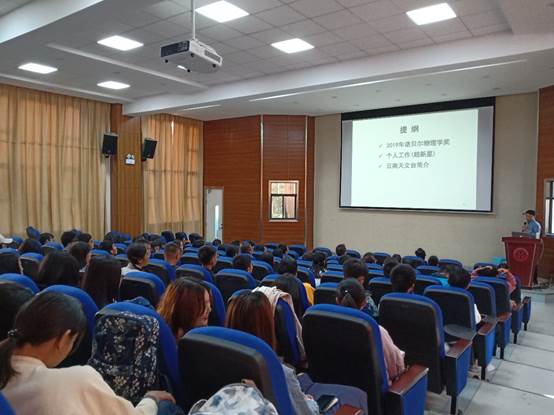 王博研究员首先介绍了2019年诺贝尔物理学奖的获得者。然后他从黑洞出发,引出超新星,即他目前研究的领域,并对超新星进行了详细的介绍。超新星在国际上受到的的关注很大,在超新星研究上取得巨大成果的团队往往受世界瞩目。最后他对中国科学院云南天文台做出了简要介绍。