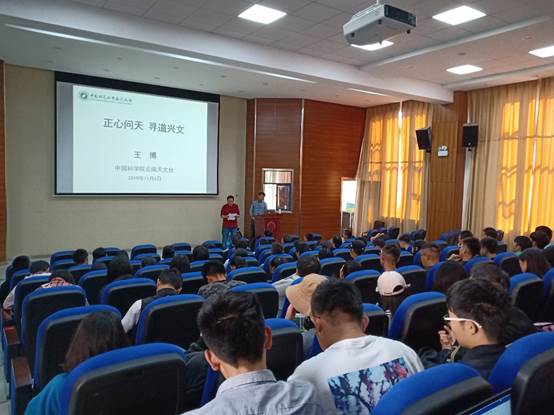 11月6日下午2点半,bevitor伟德国际1946在格物楼3103举办了主题为“正心问天 寻道兴文”的学术讲座。学院特别邀请中国科学院云南天文台研究员王博作了一场精彩的学术讲座。报告会由公司党委书记李永昆主持,周见文老师、2019级辅导员杨秀琴以及bevitor伟德国际1946大一员工参加了本次讲座。
