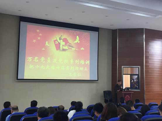 首先,王学仁先生讲述“将十九大精神落实到行动上”的专题讲座。王老师讲到,首先,做人是第一位,做人就要做高尚有道德的人,做人要有志气即有成就感。其次,行动是最重要的,高等教育就是教书育人,老师教,员工学;做人做事要有智慧,做事要高效率,做人做事做学问少了哪一方面都不行。最后,王老师送给大家三个字:“卡尖斌(即做人能上能下能小能大能文能武)”。总的来说,就是一定要把十九大精神落到实处。
