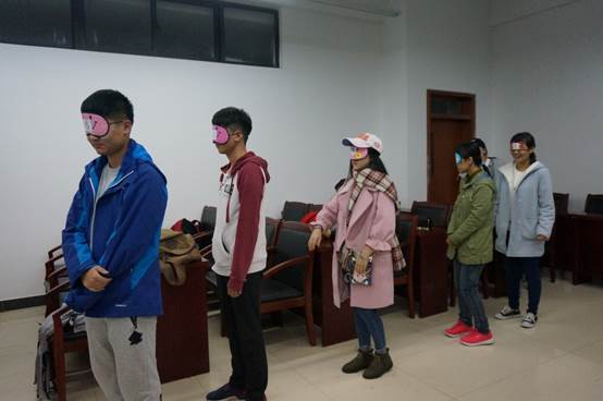 第二个游戏则是盲人排序。游戏规则是同学们带上眼罩,眼罩上有序号,在不出声的情况下正确的完成排序。一些同学采用在手上写数字的方式告诉对方自己的序号,另外一些同学运用数手指的方式传递信息。经过大家的不懈努力最终全部取得胜利。第三个游戏是你比我猜。一人比划纸上的词语另一人猜。大家沉浸在游戏中,教室里时刻充满着大家的欢笑声。