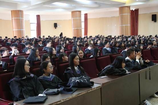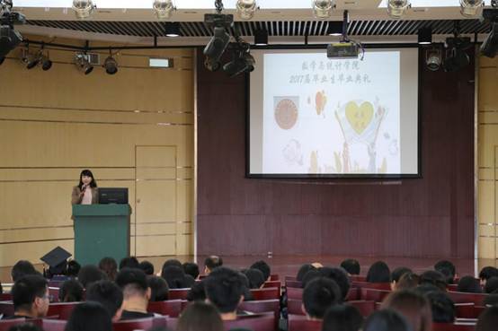 5月25日中午1点,公司在楠苑综合楼报告厅举行了2017届毕业生毕业典礼。参加毕业典礼的嘉宾有公司党委书记李永昆、副书记杜芳芳、谭建国教授、团委书记彭玫、本科生辅导员王拓迪、研究生辅导员唐安民、2013级数学与应用数学班主任葛瑜、2013级统计班班主任潘蓄林以及陈黎老师等。党委副书记杜芳芳主持本次毕业典礼。