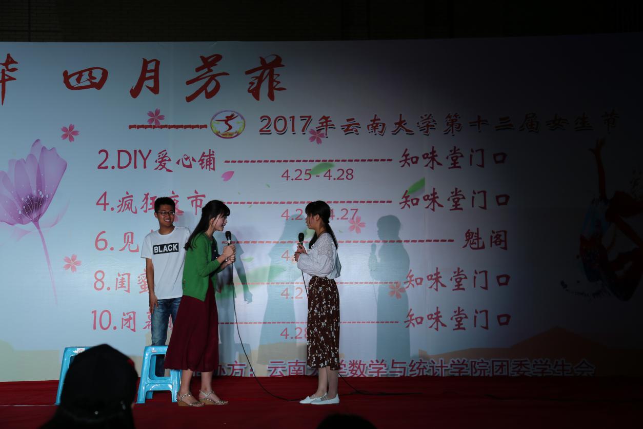 4月28日晚7点半,伟德国际1946bv官网第十二届女生节闭幕晚会在呈贡校区知味堂门口举行。
