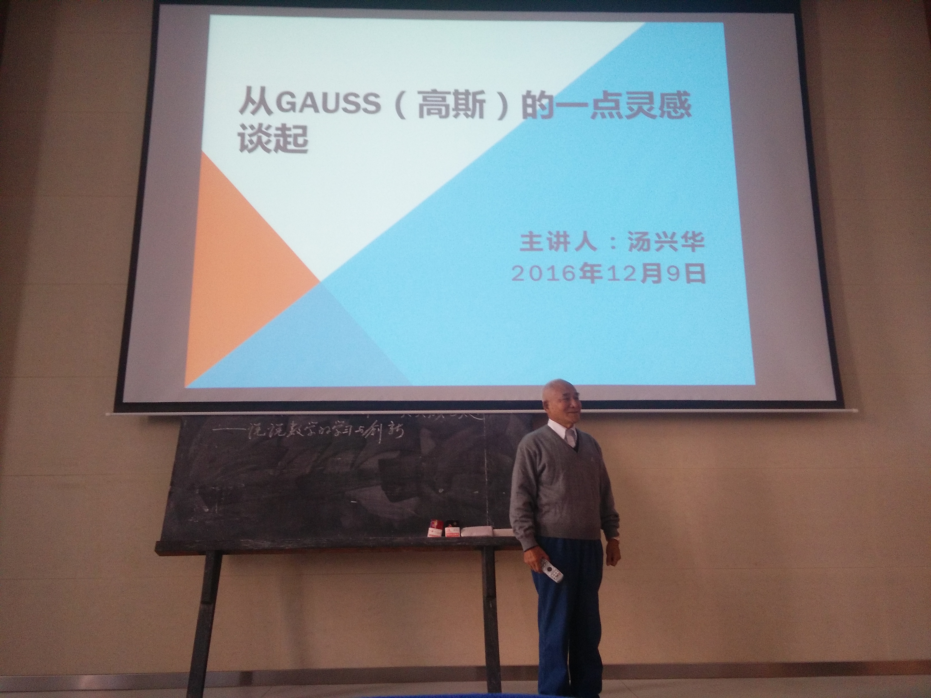 12月9日下午2点,汤兴华老师在bevitor伟德国际1946报告厅给同学们带来了“从高斯的一点灵感谈起”的学术讲座,公司2016级辅导员鲁学伟老师和2016级本科生参加了此次讲座。