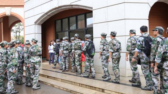 接着由三位班主任开始发放慰问品,他们把慰问品亲自交到每一位同学的手中。同学们有序的从老师手中接过慰问品,喜悦之情溢于言表。此刻,雨依然下着,但是对同学们而言,一周的军训生活早已经让他们学会了坚韧与刚毅。