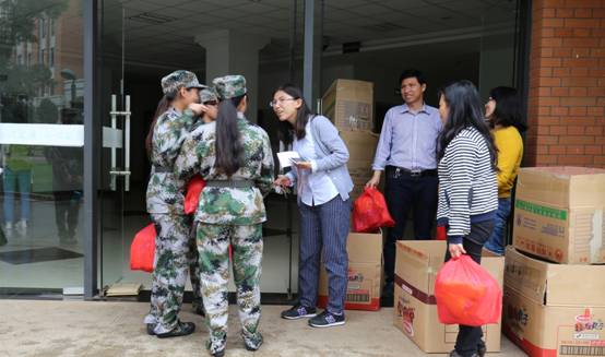 9月7日中午12点,公司在格物楼3栋一楼大厅进行了2016级本科新生军训的慰问活动。公司党委副书记杜芳芳老师, 2016级班主任骆平仙老师、娄本功老师、朱敏老师,2016级辅导员鲁学伟老师参加了此次慰问。
