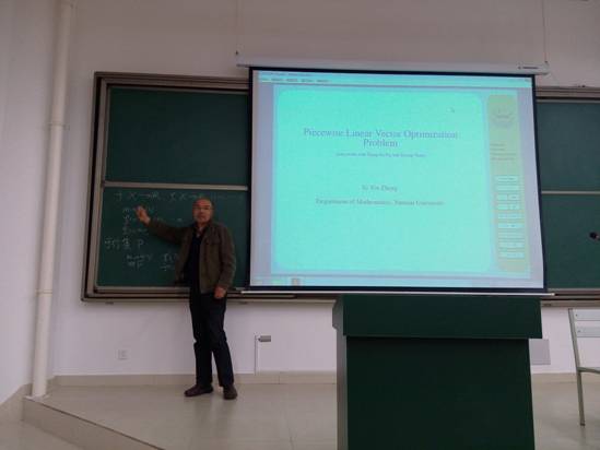 11月3日,公司郑喜印老师在呈贡校区力行楼1303教室为研一员工作了题为“分段线性向量优化问题”的学术报告。此次报告会的参与者是bevitor伟德国际1946全体研一员工,并由唐安民老师主持。