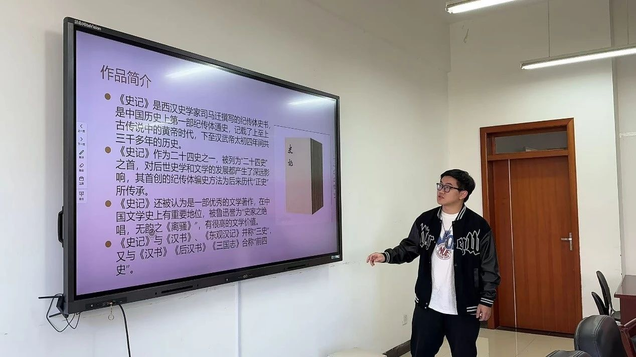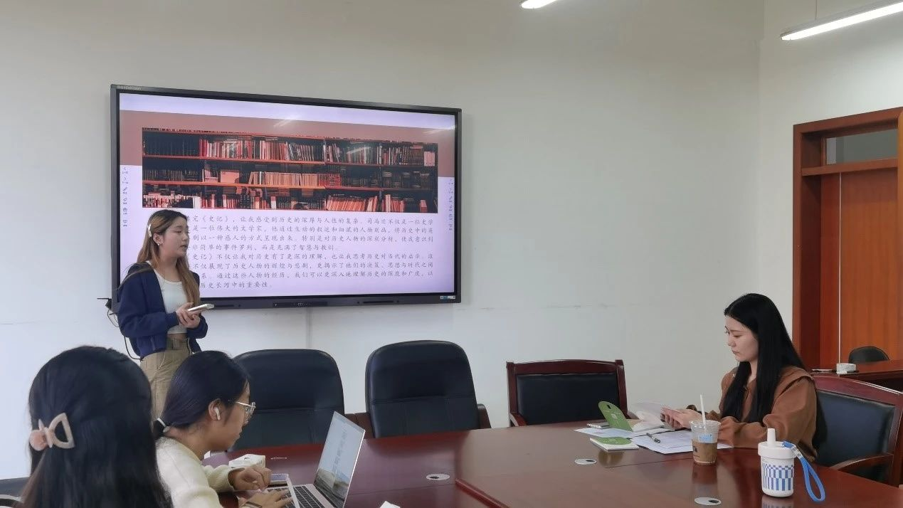 在分享结束时,罗玲玉同学总结发言:“《史记》不仅让我们对历史有了更为深刻的认识,更激发了我们对当代社会的深刻反思与启示。这些经典故事不仅描绘了历史人物的辉煌成就与人生悲剧,更深刻揭示了他们的决策、思想如何与时代背景紧密相连。通过阅读这些历史人物的生平事迹,我们能够更加透彻地理解历史的深邃与广阔,以及人性在历史长河中扮演的重要角色。”