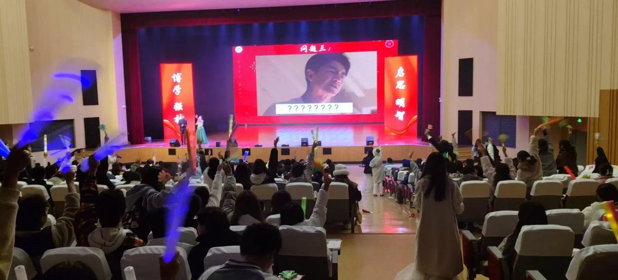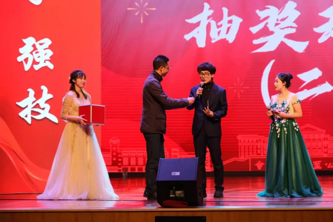 晚会中场设置了听歌识曲、校史知识抢答、赛马、还原台词等游戏环节,现场师生纷纷抢答、参与游戏互动,欢快的气氛渲染全场!晚会还特别设置了激动人心的抽奖环节,为晚会的幸运观众带来了一等奖和特等奖礼品。