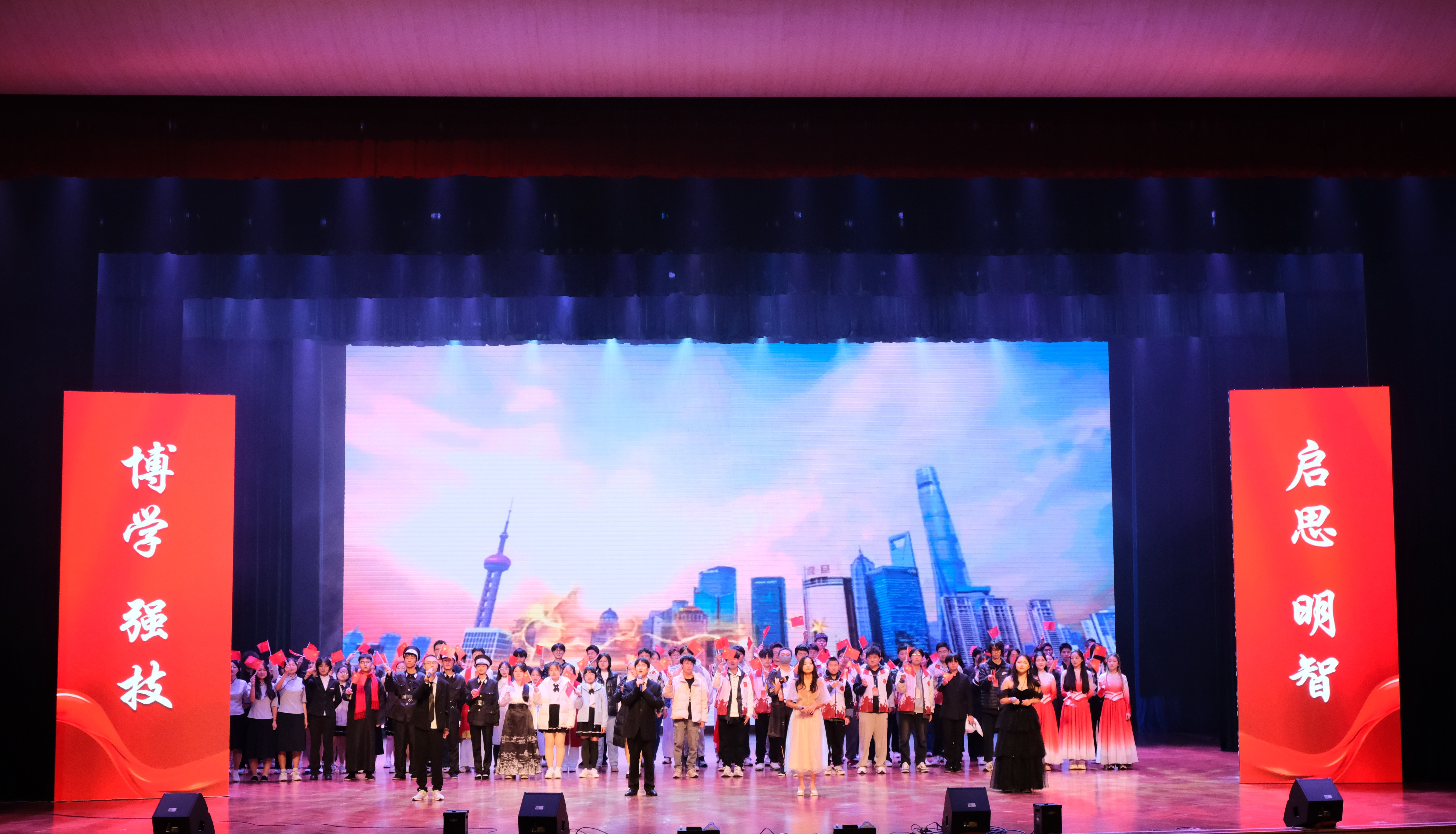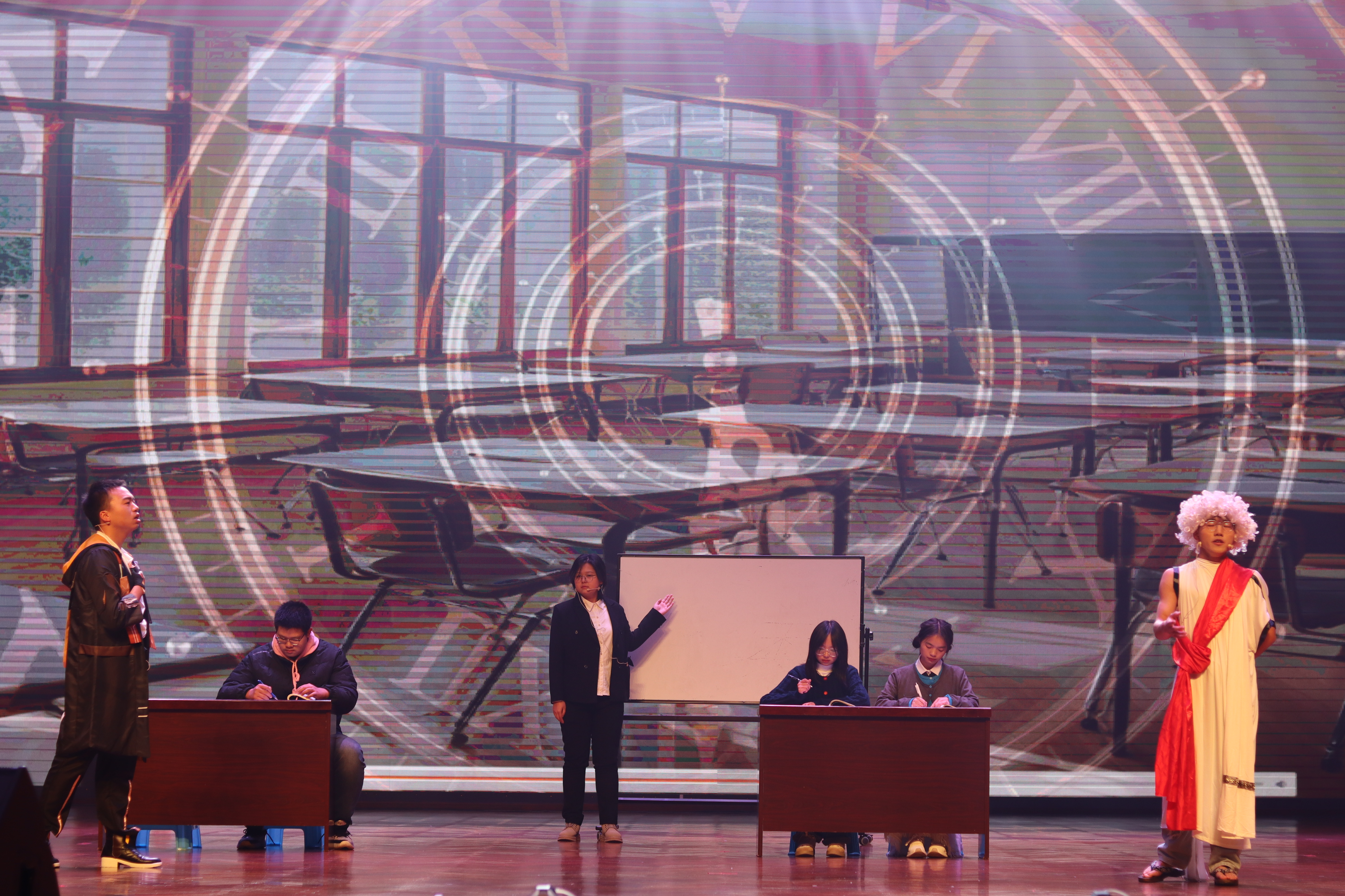 本次晚会由龚诗琪、付佳博、吴敏行和张恒主持,在他们激昂的讲话中,迎新晚会正式拉开序幕。