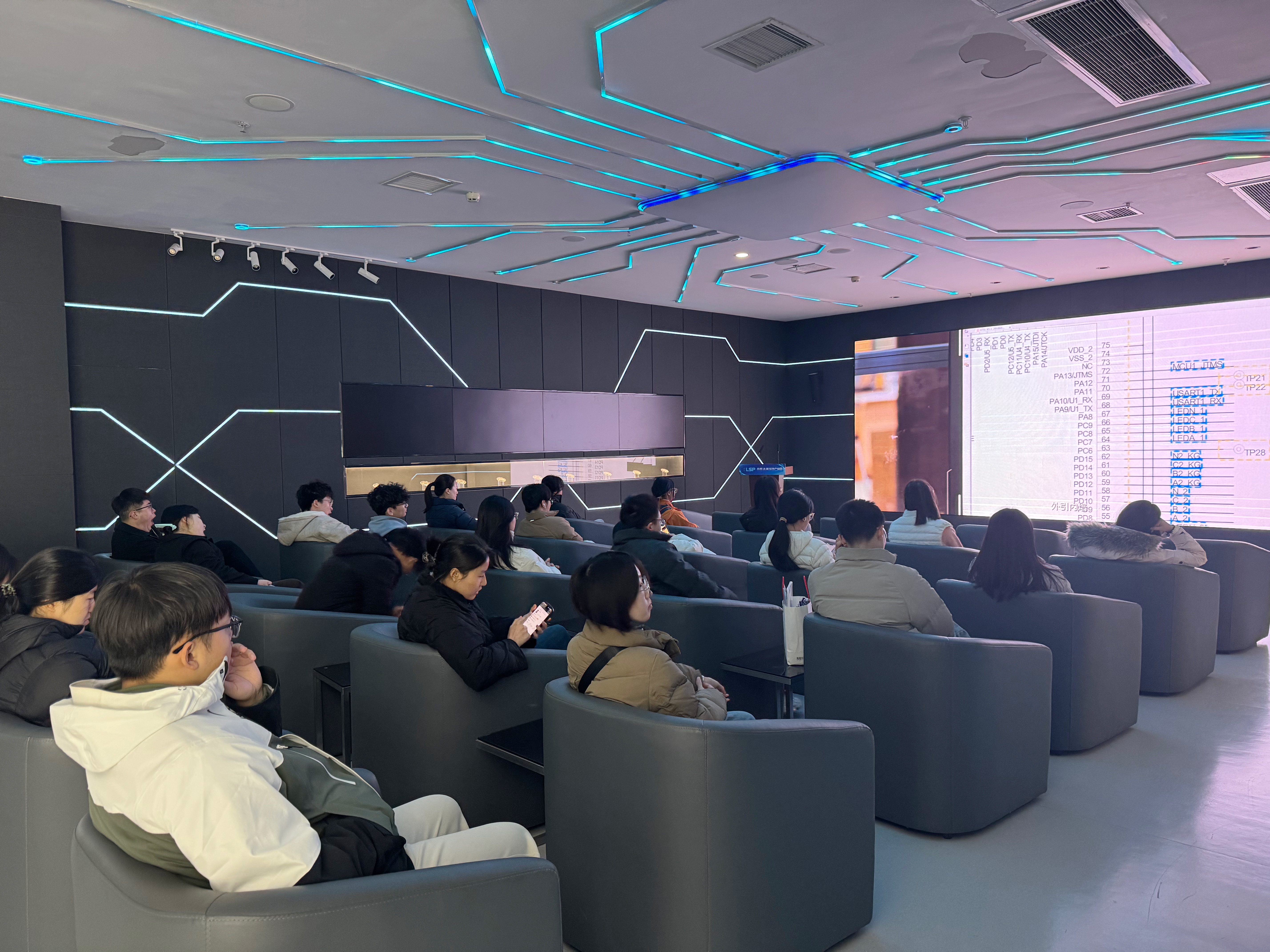 12月1日,学院师生首站走进南京华天科技,深入集成电路封装测试环节。在生产区,自动化产线与MES系统的协同运作,让师生直观看到数学建模、数据分析在芯片质量追溯、工艺防错中的应用;交流中,企业详解半导体行业对统计人才的需求,并指导技术简历撰写,助力学子明晰专业优势转化路径。
